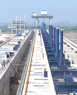公司專業(yè)生產(chǎn)的各類平面、弧型閘門,各類卷揚(yáng)、門式、移動式啟閉機(jī),各類清污機(jī)、攔污柵、升船機(jī)、壓力鋼管、錐形閥等超大型、大型水工金屬結(jié)構(gòu)件和各類起重機(jī)遠(yuǎn)銷全國26個省、市、自治區(qū),并出口到16個國家和地區(qū),廣泛應(yīng)用于全國重點工程建設(shè),如長江三峽永久性船閘工程、淮河蚌埠閘擴(kuò)建工程、浙江溫州珊溪水利樞紐工程、四川岷江紫坪鋪水利樞紐工程、浙江省分水江水利樞紐工程、中國河口第一大閘曹娥江攔河大閘和港口、船舶制造企業(yè)等。